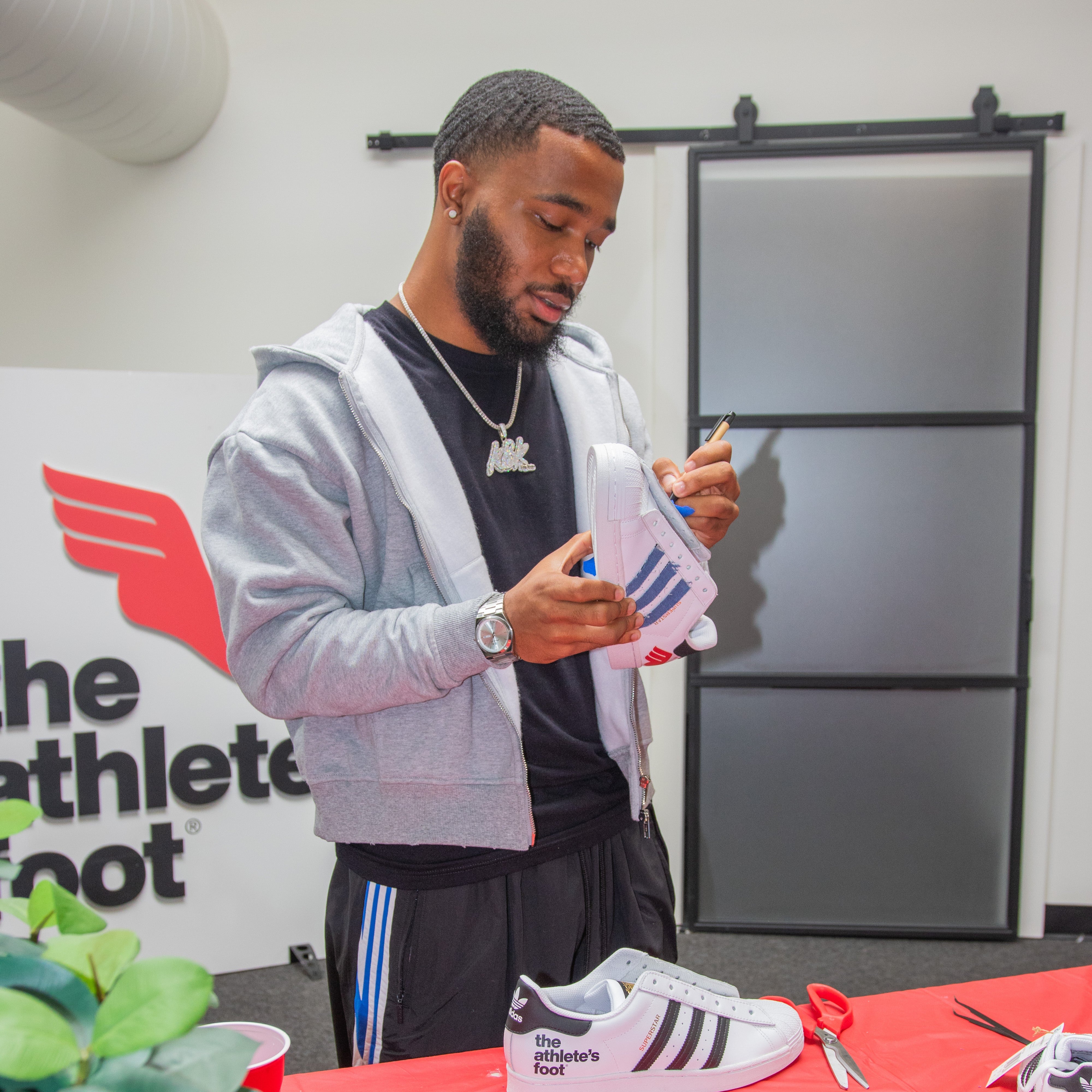 KBKCUSTOMZ was booked by Athlete’s Foot in partnership with Adidas to host a live workshop experience. During the event, KBK led a hands-on customization station where a group of youth got the chance to learn the art of sneaker customization. Together, we transformed classic Adidas Shell Toes into one-of-a-kind wearable pieces of art.